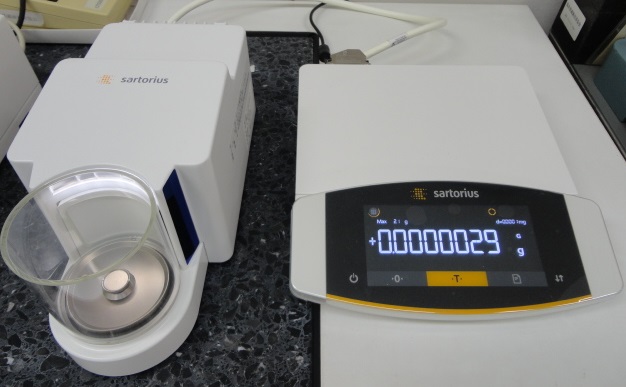<機器の概要>微量の試料の質量を正確に測定し、測定結果をデジタル表示する電子天秤です。最小で0.1μgと非常に小さい質量を精度良く測定でき、また計量皿の周りに備えた風防により、空調等のわずかな空気の流れによる表示の乱れを抑えることができます。