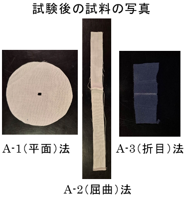 Âбþµ¬³Ê¡§JIS L 1096 ¿¥ÊªµÚ¤ÓÊÔ¤ßʪ¤ÎÀ¸ÃϻÊýË¡Ãæ¤ÎËàÌ×¶¯¤µ ¡¡¡¡¡¡¡¡¡¡µÚ¤ÓË໤ÊÑ¿§Àɾ²ÁA¡Ê¥æ¥Ë¥Ð¡¼¥µ¥ë·Á¡ËË¡ ¬ÄêÂоݡ§A-1¡ÊÊ¿ÌÌ¡ËË¡¡Ä¿¥ÊªµÚ¤ÓÊÔʪ ¡¡¡¡¡¡¡¡¡¡A-2¡Ê¶þ¶Ê¡ËË¡¡Ä¿¥Êª ¡¡¡¡¡¡¡¡¡¡A-3¡ÊÀÞÌÜ¡ËË¡¡Ä¿¥ÊªµÚ¤ÓÊÔʪ ¬ÄêÉô¡¡¡§±ýÉü¥¹¥È¥í¡¼¥¯¡Ä25Ð ¡¡±ýÉü®ÅÙ¡Ä125²ó¡Þ5²ó/ʬ ¡¡¡¡¡¡¡¡¡¡¶õµ¤°µÎϡʻÊÒ¿âľÊý¸þ¡Ë¡Ä27.6kPa ¡¡¡¡¡¡¡¡¡¡²¡°µ²Ù½Å¡Ê»î¸³ÊÒ¿âľÊý¸þ¡Ë¡Ä2.23¡Á5.56N ¡¡¡¡¡¡¡¡¡¡°úÄ¥²Ù½Å¡Ê¶þ¶Ê¥Ð¡¼¤Ë¤«¤«¤ë²Ù½Å¡Ë¡Ä8.90¡Á31.14N |