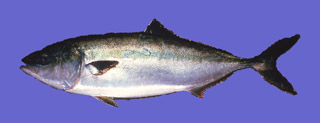 アジ科 地方名:アオコ〈0.3sまで〉・イナダ・ツバス・フクラギ〈0.3〜0.8s〉・ハマチ〈1〜2s〉(全県下)、ナル〈2〜4s〉(三国・越前)、マルゴ〈2〜4s〉(高浜)、ワラサ〈2〜4s〉(全県下)、ブリ〈5s以上〉(全県下) 本県の回遊性浮魚類の中で最も重要な種のひとつで、漁獲量も多い。体側の中央部には1本の黄色縦帯がある。体長70p位で親となり、全長110p、14s位まで成長する。暖流海域の水深30〜120mの範囲を移動し、定置網、釣り、旋網、底刺網および延縄で漁獲される。定置網では、春に常神埼以西、夏〜秋期には常神埼以東〜越前岬水域が主漁場となり、成漁期は5〜8月、10〜11月で、ツバス、ハマチ級が対象となる。釣り、旋網では、春〜夏期に立石〜高浜(30〜60m)および玄達瀬(40〜60m)が漁場の中心となるが、秋期は美浜沖、冬期は越前岬〜三国沖(30〜60m)に漁場が形成される。旋網の成漁期は10〜11月、釣りでは5〜6月と8〜12月で8〜9月はアオコ級、10〜12月はハマチ・ワラサ級が対象となることが多い。産卵期は2〜5月。幼魚はアミ類、小型のイカ類を、成魚ではイワシ、アジ、サバ、イカ類を捕食する。刺身、すし種、焼物、煮物等にされる。特に冬期の寒ブリ≠フ刺身は美味で有名である。また、かぶらずし(正月用すし漬)の材料としても欠かせない。 |