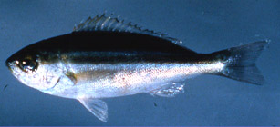 イサキ科 地方名:エサキ(三国〜小浜)、イキサキ(越廼)、イサギ(米ノ浦・敦賀・和田)、イッサキ(美浜) 幼期は、体側に3本の黄褐色縦帯が鮮明であるが、成長するにつれてこの縦帯は不明瞭になってくる。全長40p位になる。岩礁域を好み、幼魚は沿岸の藻場に多い。若狭湾では幼魚が定置網等で混獲されるが、成魚は主として春〜夏期に、沖合の天然礁で一本釣りで漁獲される。産卵期は6〜9月。小型魚類の他、アミ類、ヨコエビ類等の小型甲殻類を捕食する。美味で、塩焼や空揚げ、刺身にされる。中骨は硬いので煮物等では注意が必要。 |