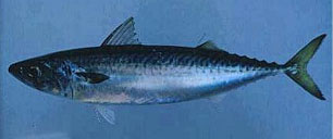 サバ科 地方名:マサバ(三国)、サバ(越廼)、センニチ(中・小形魚、越廼)、モウジン・モウゼン(大形魚、越廼)、マルサバ(河野)、メサバ(河野・小浜)、ピンサバ(小形魚、美浜・小浜)、アミサバ(和田) 体は紡錘形で、背部は緑色の地に、黒色の波状をした紋が側線の下までのびる。全長50p位になる。沿岸、沖合の水深およそ0〜250mを移動する回遊性魚のひとつで、定置網、施網、釣りの他、地曳網や延縄で多獲される。施網漁場は、春期には小浜沖〜常神埼沖、夏期は立石埼〜三国沖の水深50〜100mが主漁場となる。秋期には小浜〜常神埼沖の100〜150m水域が漁場の中心となることが多い。釣りの漁場は、冬期では米ノ浦〜越前岬沖の100〜150m水域である。施網の漁期は4〜11月で盛期は5〜10月。釣りのそれは5〜2月におよぶ。産卵期は3〜8月、盛期は4〜7月。幼稚魚は表層性の小型動物プランクトンを捕食するが、成魚では大型プランクトンの他にイワシ類、キュウリエソ、小型イカ類、時にサルパ、クラゲ類も捕食する。浜焼サバ(若狭の一本串)は特に有名で、京都のバッテラも若狭のサバが運ばれたものである。また、なれサバや糠漬のへしこにもされる他、一般的には、みそ煮、おろし煮、しめサバ等にされ、特に秋サバは脂が乗り美味。 |