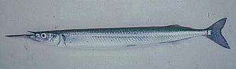 サヨリ科 地方名:サイヨリ(福井・越前)、サシ・サス・サユリ(越廼)、ナカッポ(越前)、スズコ(河野)、コヨリ(敦賀)、ミスサイラ・ミスサエラ(嶺南)、サエラ・スジ(小浜)、スズ(和田) 体は細長く、背部は青緑色。側面から腹部は銀白色。下顎は上顎より著しく長く、その先端部は赤または橙色。全長40p位になる。沿岸の表層に生息するが、時に河口や湖沼にも侵入する。釣りの対象魚として親しまれる他、本県では主として船曳網で漁獲され、漁期は4〜5月。産卵期は春から初夏。下顎をスプーンのように使って動物プランクトンを、時に小型昆虫類も捕食する。美味な魚で、天ぷら、酢の物、椀種、干物の他、すし種、刺身(糸作り)等にして利用される。 |