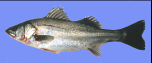 スズキ科 地方名:カナンボ・ガマ(三国・小浜)、ススキ(越廼)、コトヒキ・ベラ・ムベ(敦賀)、スキ(美浜)、ハネゴ(小形魚、小浜・高浜)、セイゴ(小形魚、全県下) 体は側扁し、下顎は上顎より突出している。背部は灰青色、腹部は銀白色。鰓蓋主骨の後方に鋭い2棘がある。全長1mに達する。沿岸・内湾域のおよそ15m以浅の砂質帯や10〜20mの岩礁帯が好漁場である。未成魚は、夏期に河川にも遡上する。定置網、刺網の他、曳釣り、延縄によって漁獲される。漁期は4〜12月。産卵期は12〜3月。稚魚期には動物プランクトン食性であるが、成長につれてエビ・カニ類、貝類、小型魚類を混食する。近縁種に、下顎腹面に鱗があるヒラスズキがある。薄くそぎ身にして、刺身(洗い)にする他、塩焼や椀種、煮物、フライ、奉書焼も食通を喜ばす。 |