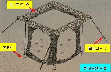 箱網は、中に入った魚が外に出にくい構造になっています。