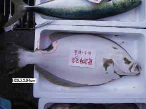 ![]() 再捕されたヒラメ |