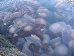 ![]() 定置網に入網した大型クラゲ |